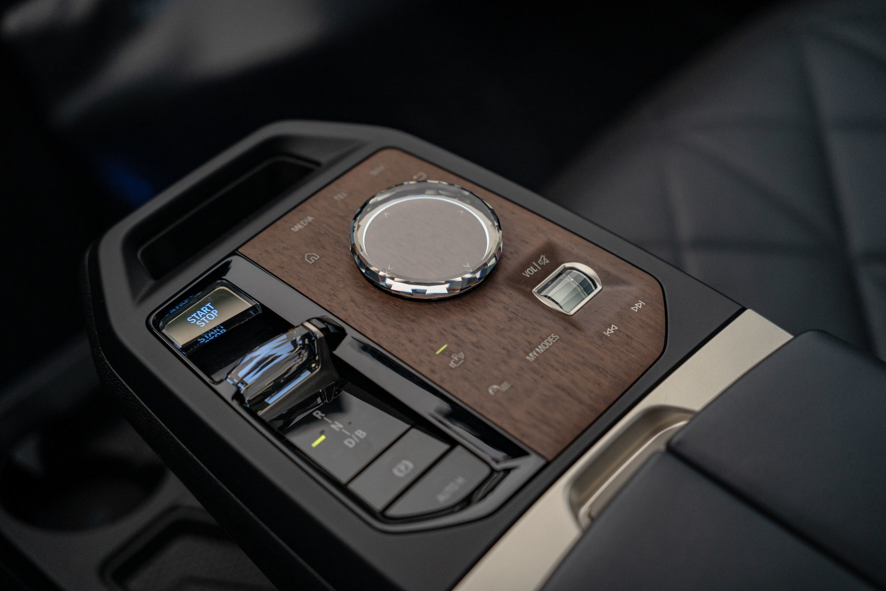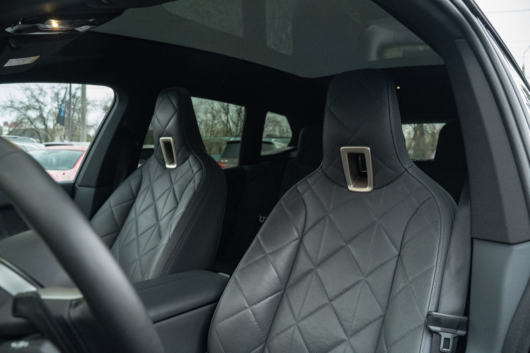 Темний комбінований салон з деревʼяними вставками