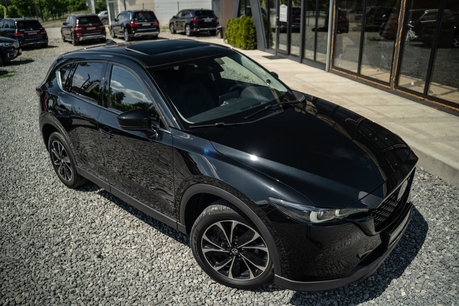 Mazda CX-5 - елегантний і динамічний компактний кросовер із потужним 2.5-літровим двигуном, преміальним інтер’єром, сучасними технологіями та відмінною керованістю, ідеальний для міських поїздок і подорожей завдяки гарній комплектації.